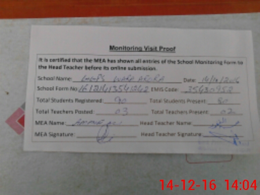 | EMIS Code: 35430952 | Name of School: GGPS MODEL WARA ARORA | |||