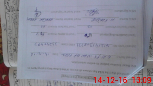 | Name: IQ**** HU**** Designation: (School Headmaster's/Headmistress's) PST Phone/Cell Number: 03**** |