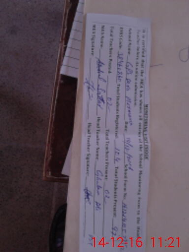 | Certified that this School was Inspected by the Undersigned MEA/DMO Today and the Information Stated Above is as Per Record. | |||||