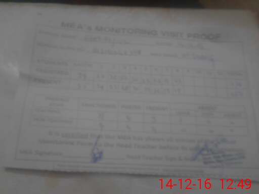 | Attendance Register | Head Teacher | MEA with School | Visit Proof |