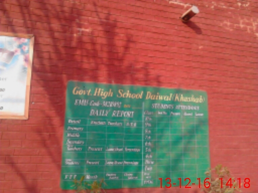 | EMIS Code: 38210892 | Name of School: GHS DAIWAL | |||