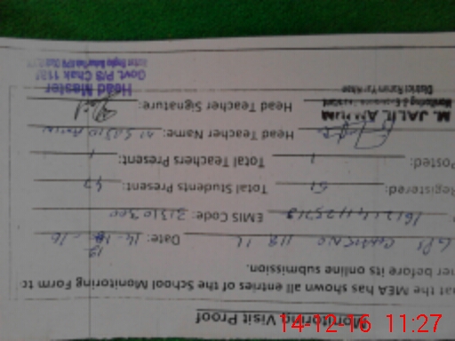 | Attendance Register | Head Teacher | MEA with School | Visit Proof |