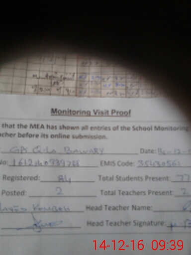 | Attendance Register | Head Teacher | MEA with School | Visit Proof |