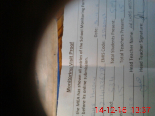 | Attendance Register | Head Teacher | MEA with School | Visit Proof |