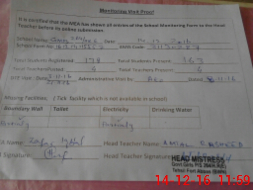 | Certified that this School was Inspected by the Undersigned MEA/DMO Today and the Information Stated Above is as Per Record. | |||||