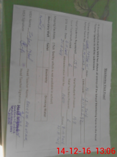 | Certified that this School was Inspected by the Undersigned MEA/DMO Today and the Information Stated Above is as Per Record. | |||||