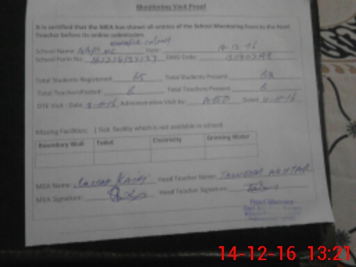 | Certified that this School was Inspected by the Undersigned MEA/DMO Today and the Information Stated Above is as Per Record. | |||||