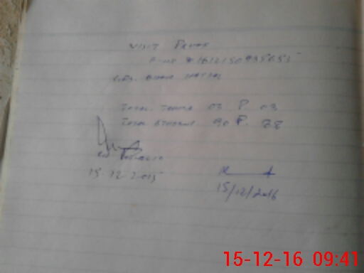 | Monitoring Date: 15-12-2016 | Start Time: 15-12-2016 09:26 AM | End Time: 15-12-2016 09:41 AM | Name of MEA: Re**** Za**** Pa**** Ka**** | |