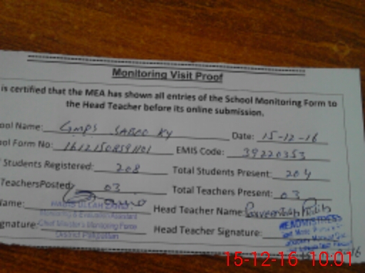 | EMIS Code: 39220353 | Name of School: GMPS SABOOKA DAKHANA TIBI LAL BAIG | |||