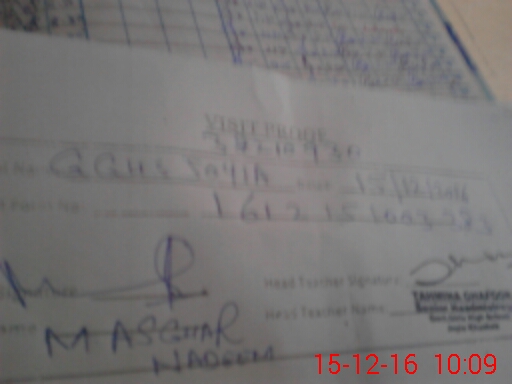 | Name: Me**** An**** Designation: (School Headmaster's/Headmistress's) Headmistress Phone/Cell Number: 03**** |