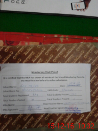 | Attendance Register | Head Teacher | MEA with School | Visit Proof |