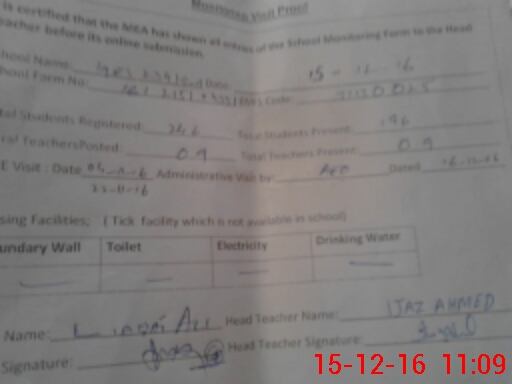 | Certified that this School was Inspected by the Undersigned MEA/DMO Today and the Information Stated Above is as Per Record. | |||||