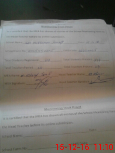 | Attendance Register | Head Teacher | MEA with School | Visit Proof |