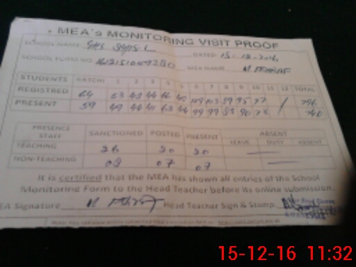| Attendance Register | Head Teacher | MEA with School | Visit Proof |