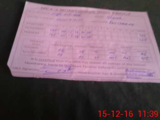 | Monitoring Date: 15-12-2016 | Start Time: 15-12-2016 11:25 AM | End Time: 15-12-2016 12:00 PM | Name of MEA: Ra**** Sh**** Al**** ex**** | |