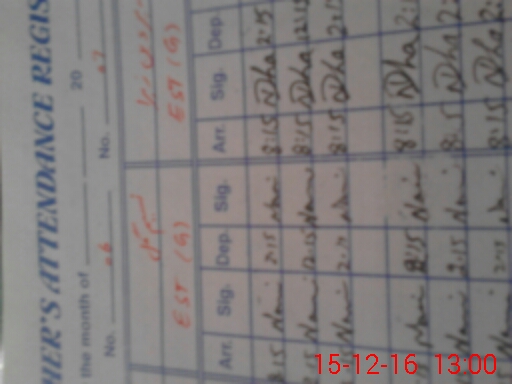 | CNIC | Full Name | Designation | R/C | Absence During Last Calender Month |