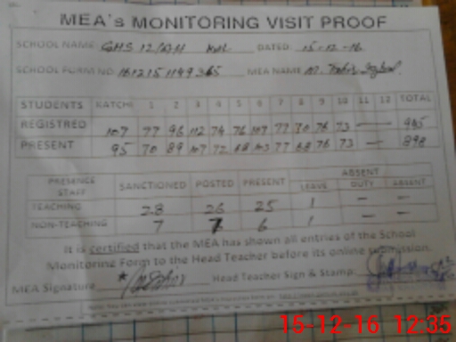 | Attendance Register | Head Teacher | MEA with School | Visit Proof |