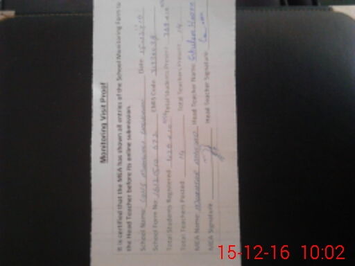 | Attendance Register | Head Teacher | MEA with School | Visit Proof |