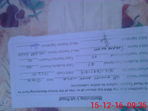 | Attendance Register | Head Teacher | MEA with School | Visit Proof |