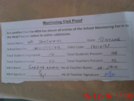 | EMIS Code: 38310143 | Name of School: GPS JANJWANI | |||