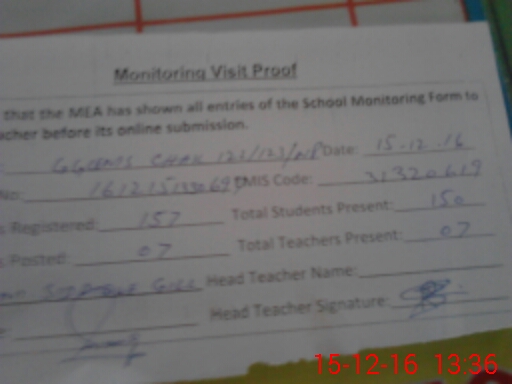 | Attendance Register | Head Teacher | MEA with School | Visit Proof |
