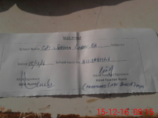 | Attendance Register | Head Teacher | MEA with School | Visit Proof |