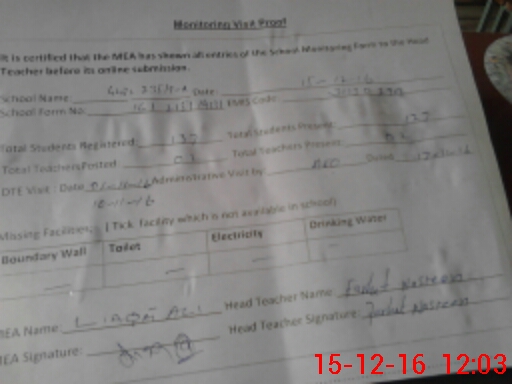 | Attendance Register | Head Teacher | MEA with School | Visit Proof |