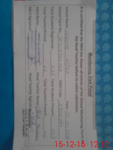 | Certified that this School was Inspected by the Undersigned MEA/DMO Today and the Information Stated Above is as Per Record. | |||||