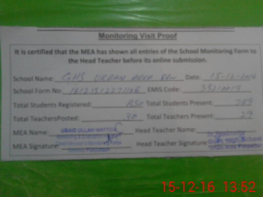 | EMIS Code: 39210019 | Name of School: GHS URBAN AREA ISLAM COLONY | |||