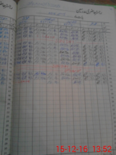 | CNIC | Full Name | Designation | R/C | Absence During Last Calender Month |