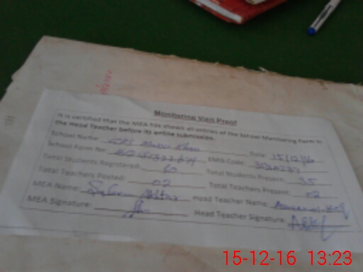 | Certified that this School was Inspected by the Undersigned MEA/DMO Today and the Information Stated Above is as Per Record. | |||||