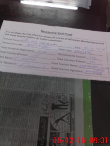 | Certified that this School was Inspected by the Undersigned MEA/DMO Today and the Information Stated Above is as Per Record. | |||||