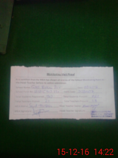 | Attendance Register | Head Teacher | MEA with School | Visit Proof |