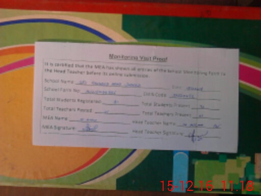 | Certified that this School was Inspected by the Undersigned MEA/DMO Today and the Information Stated Above is as Per Record. | |||||