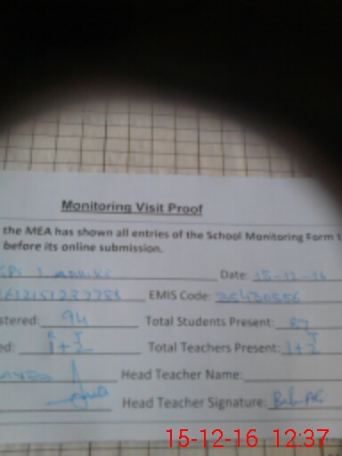 | Attendance Register | Head Teacher | MEA with School | Visit Proof |