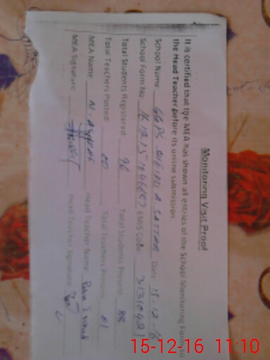 | Monitoring Date: 15-12-2016 | Start Time: 15-12-2016 10:45 AM | End Time: 15-12-2016 11:10 AM | Name of MEA: Mu**** As**** KP**** | |