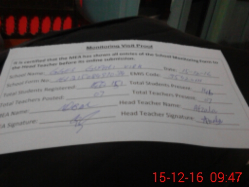 | Attendance Register | Head Teacher | MEA with School | Visit Proof |