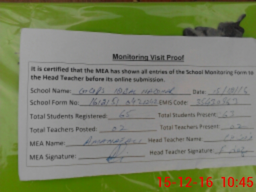 | Attendance Register | Head Teacher | MEA with School | Visit Proof |