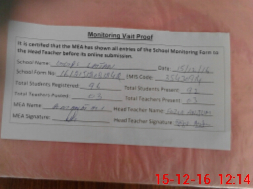 | Certified that this School was Inspected by the Undersigned MEA/DMO Today and the Information Stated Above is as Per Record. | |||||