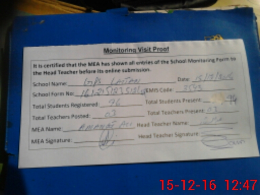 | Certified that this School was Inspected by the Undersigned MEA/DMO Today and the Information Stated Above is as Per Record. | |||||