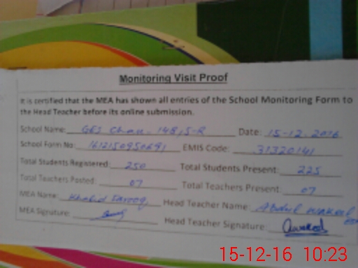 | EMIS Code: 31320141 | Name of School: GHS CHAK 148/A | |||