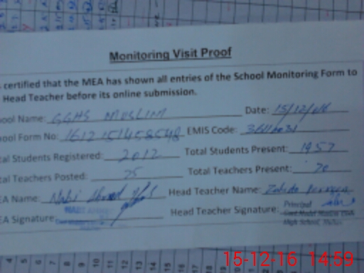 | Attendance Register | Head Teacher | MEA with School | Visit Proof |