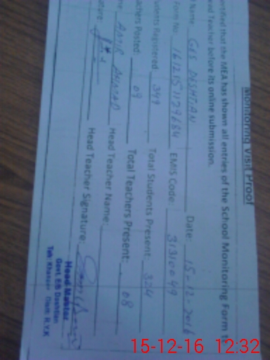 | Certified that this School was Inspected by the Undersigned MEA/DMO Today and the Information Stated Above is as Per Record. | |||||