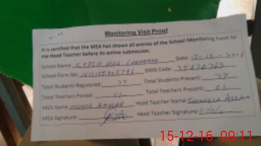 | Certified that this School was Inspected by the Undersigned MEA/DMO Today and the Information Stated Above is as Per Record. | |||||