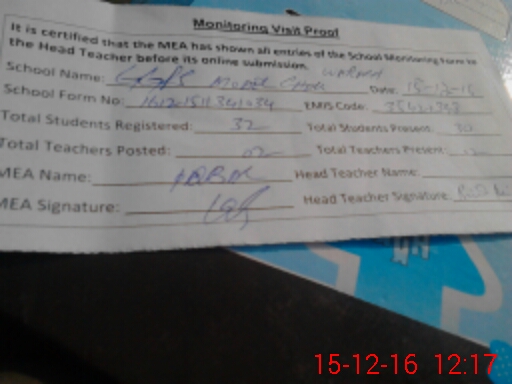 | Certified that this School was Inspected by the Undersigned MEA/DMO Today and the Information Stated Above is as Per Record. | |||||