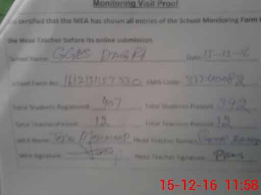 | Certified that this School was Inspected by the Undersigned MEA/DMO Today and the Information Stated Above is as Per Record. | |||||