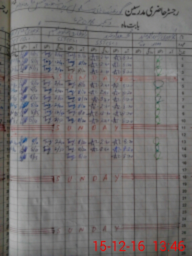 | CNIC | Full Name | Designation | R/C | Absence During Last Calender Month |
