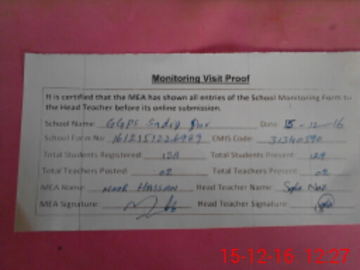 | EMIS Code: 31340590 | Name of School: GGPS SADIQ PUR | |||
