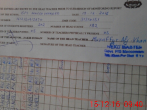 | EMIS Code: 31310151 | Name of School: GPS MACCO WARID (After Noon) | |||