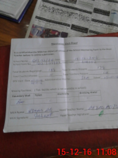 | Certified that this School was Inspected by the Undersigned MEA/DMO Today and the Information Stated Above is as Per Record. | |||||